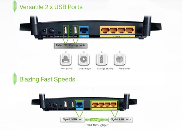 4 10/100/1000Mbps LAN Ports